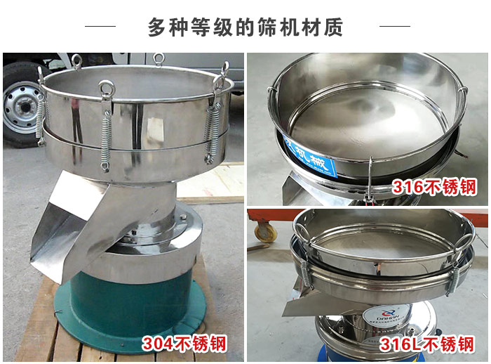 乳液過濾振動(dòng)篩通常是采用的不銹鋼材質(zhì)制作而成,而不銹鋼材質(zhì)也是分為好幾種的(如:304、316和316L)通常不銹鋼材質(zhì)有全不銹鋼材質(zhì)和標(biāo)準(zhǔn)不銹鋼材質(zhì)的兩種。全不銹鋼材質(zhì)的振動(dòng)篩全機(jī)身采用不銹鋼制作而成,造價(jià)相對(duì)較高;標(biāo)準(zhǔn)不銹鋼材質(zhì)的振動(dòng)篩與物料接觸的部位采用不銹鋼材質(zhì),相對(duì)于全不銹鋼材質(zhì)的而言,價(jià)格更低一些。