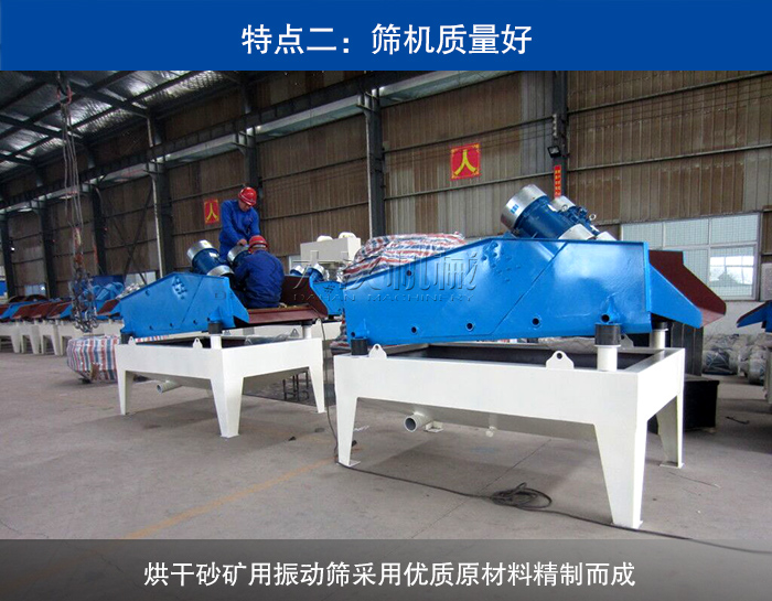 烘干砂屬于礦用行業物料,一般來說篩分烘干砂的都是大型作業,對于篩分產量要求大、篩分質量要求好、篩分環境要求高,所以推薦您使用礦用振動篩,對烘干砂進行篩分。下面小編就根據這三個方面來為您介紹一下烘干砂礦用振動篩:
